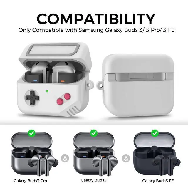 Case - 2024 Silicone Game Design for Buds Pro/Buds 3 FE Case Cover for Men/Women Gamer (Light Grey)