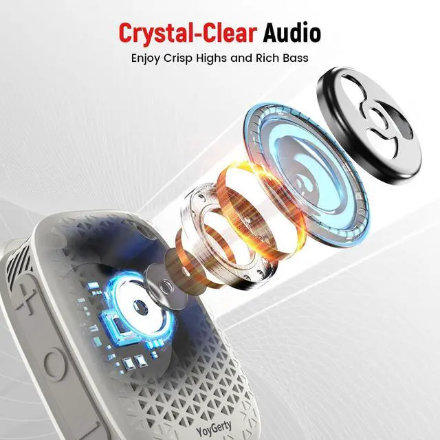 Upgraded Bluetooth 5.4The upgraded Bluetooth 5.4 technology enables seamless Bluetooth device connectivity and exceptional wireless stability within a 33-foot range. Whether you're cycling outdoors or commuting daily, this clip-on Bluetooth speaker ensures effortless connectivity.