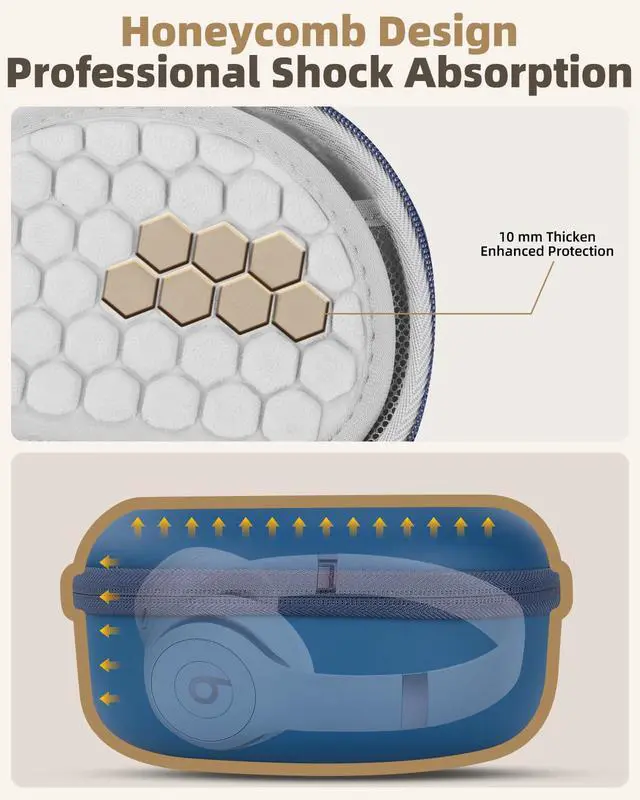 Thickened polka dots: The outer shell is made of EVA waterproof and impact-resistant material, while the inner lining is soft and padded. The tough outer shell with a soft lining provides a safe environment for the headphones.