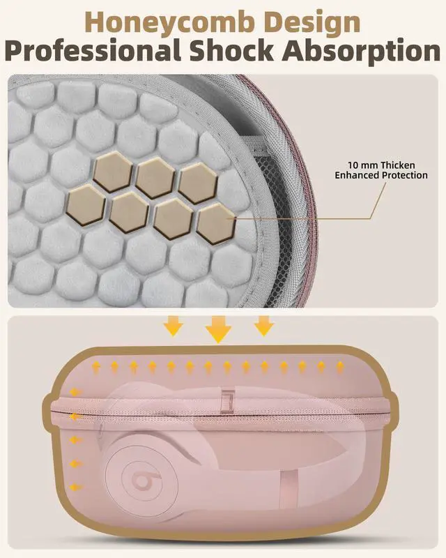 Thickened polka dots: The outer shell is constructed from EVA waterproof and impact-resistant material, while the inner lining is soft and padded. The tough outer shell combined with the soft lining offers a safe environment for your headphones.