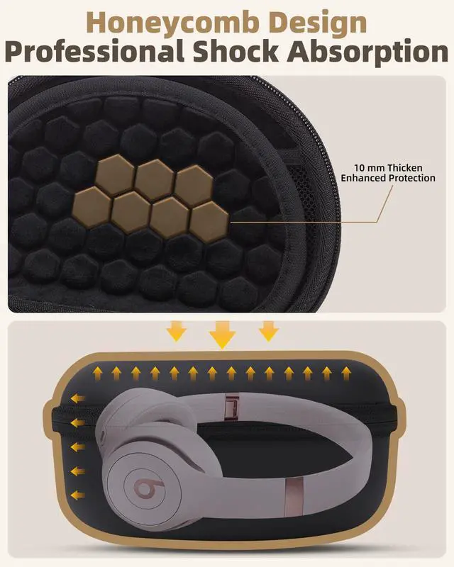 Thickened polka dots: The outer shell is made of EVA waterproof and impact-resistant material, while the inner lining is soft and padded. Tough outer shell with soft lining provides a safe environment for the headphones.