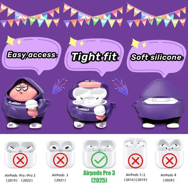 Designed for AirPods Pro 3 (2025) Exclusively compatible with AirPods Pro 3rd Generation (2025, USB-C). Not compatible with AirPods Pro 1/2, AirPods 1/2/3/4. (Note: Earbuds and charging case are not included.)