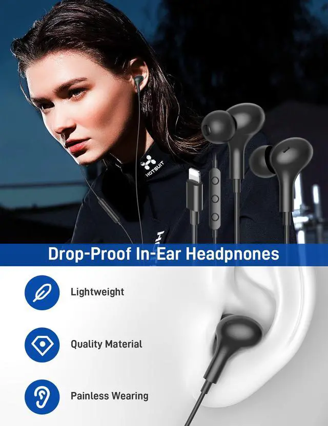 HI-FI for Lightning Headphones with Noise Isolation: Premium wired earbuds provide deep bass and distortion-free sound, whether working out at the gym or enjoying music outdoors.