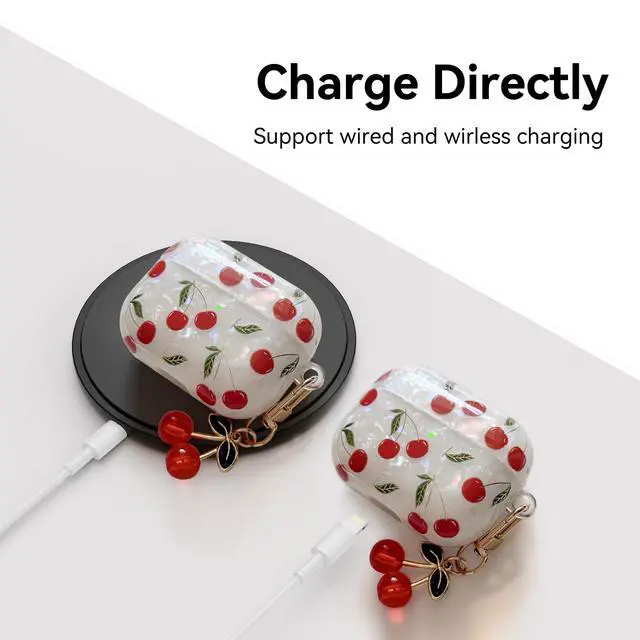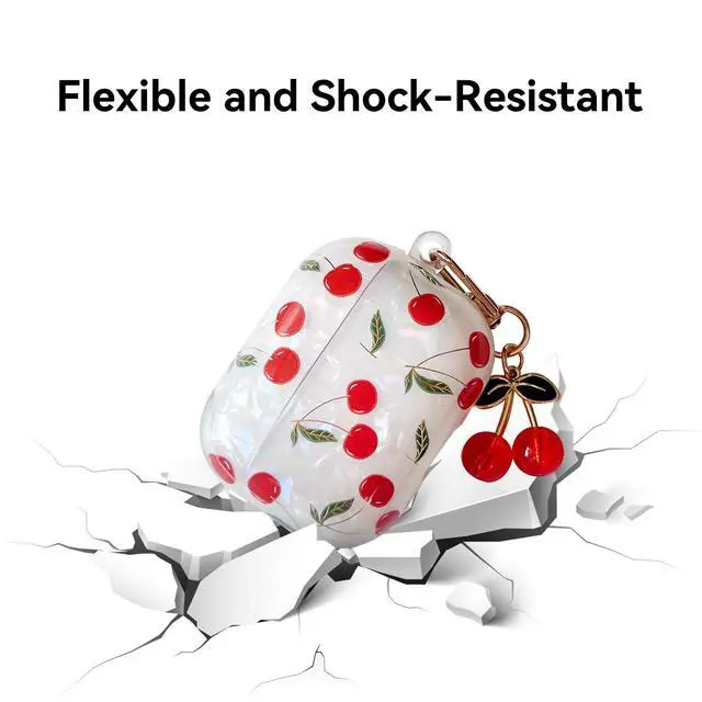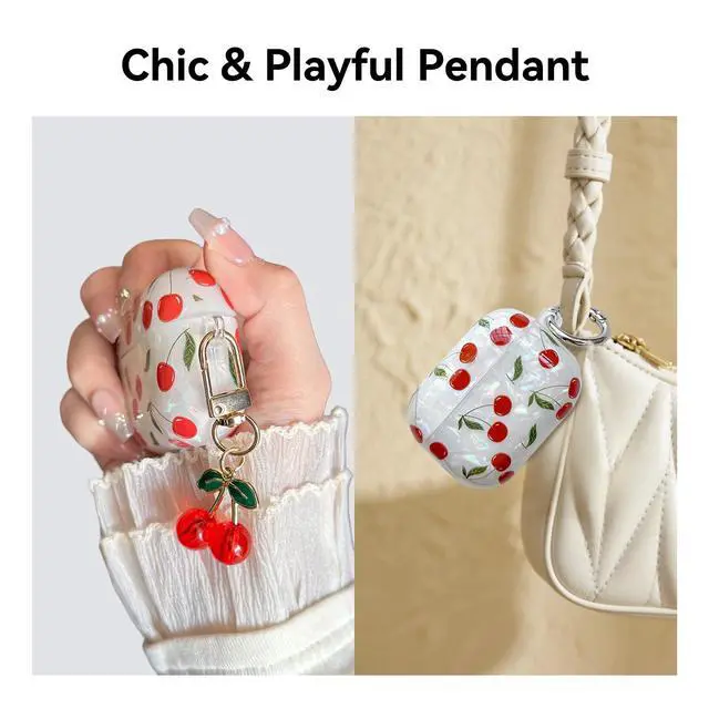 Chic & Playful Design: Show off your personality with a hard TPU case featuring an adorable cherry print and a matching cherry keychain. A fun and stylish accessory for girls, teens, and womenperfect for attaching to keys, belts, backpacks, and more.