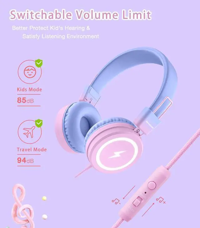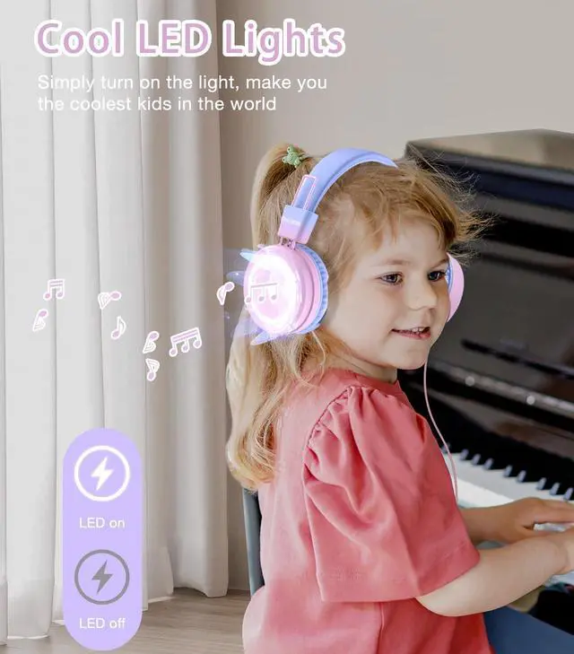 Unique LED Lightning Bolt Design With the ability to activate unique LED lightning bolt lights, these wired headphones offer an exciting experience for kids. They can choose to keep the lights on or off with a simple button. Let your child enjoy a fun and stylish listening experience.