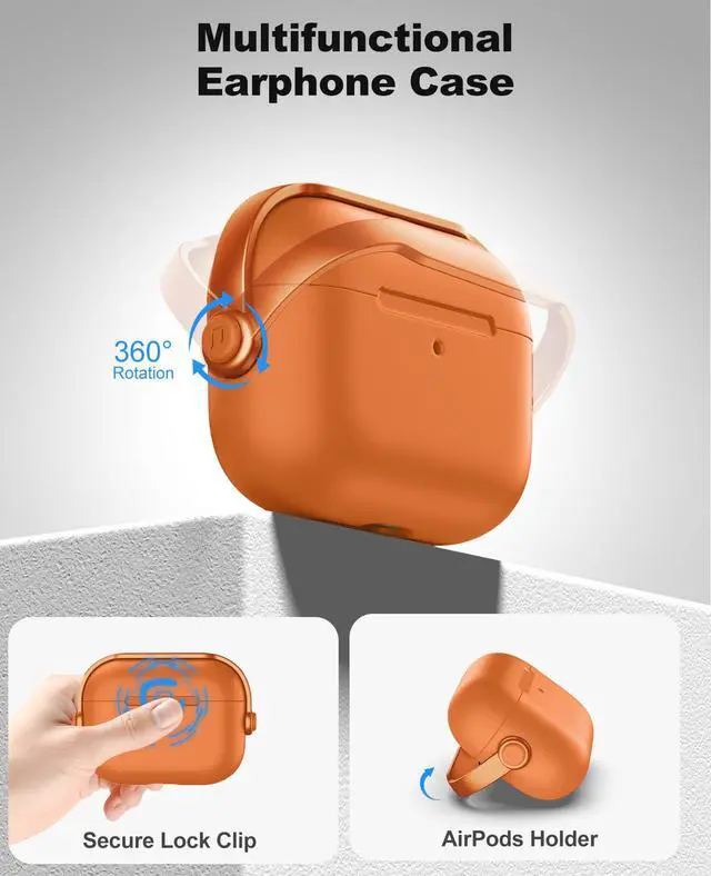 Safety Lock Design: The protective case has a unique safety lock design that not only makes your earphone look stylish but also effectively protects it from accidental falls. When the ring lock is fixed upward on the top cover, it will lock the charging case.