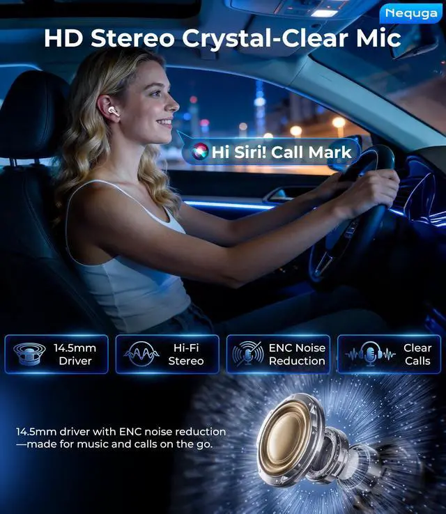 HD Stereo + Crystal-Clear Mic: Custom 14.5mm titanium drivers (50% larger than standard) deliver sparkling highs and punchy bass, revealing musical details most wireless earbuds lose. Advanced audio codec support ensures minimal signal compression for studio-quality sound and exceptional call clarity.