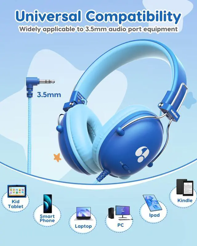 Universal Compatibility: The wired kids headphones are compatible with any device featuring a 3.5mm audio jackincluding Chromebooks, tablets, smartphones, laptops, MP3 players, PCs, and gaming consoles. Simply plug and play.