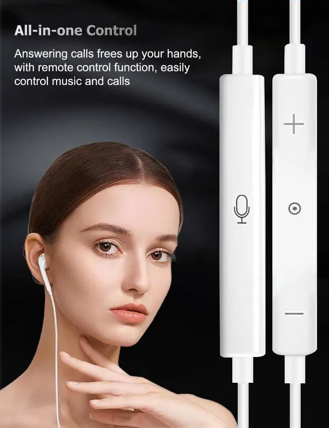 Superior Audio Quality--Dive into a world of crystal-clear sound! These wired headphones for iPhone boast a unique and lightweight in-ear design, providing a wide soundstage with authentic and detailed bass, crisp highs, and a rich sonic spectrum for a powerful and balanced listening experience. Hear every note and nuance with exceptional clarity. Perfect for music lovers, podcasts, and audiobooks!