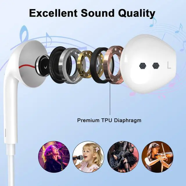 Wired Earbuds with MicrophoneThe earbuds feature an ergonomic angular design and ultra-lightweight in-ear design, allowing for long listening sessions without discomfort, making them perfect for gaming and daily use (walking, office, sleeping, etc.).