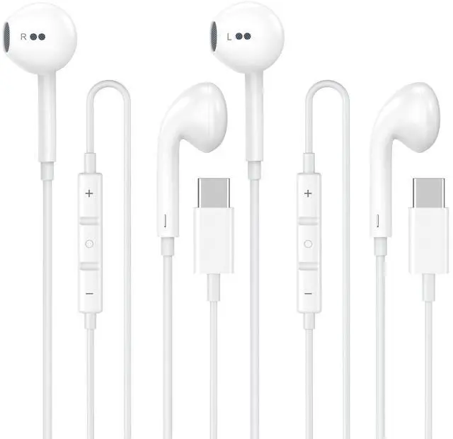Wired USB C Headphones, 2 Pack Type C Earphones with Microphone & Remote Control, Noise Cancelling Wired Earbuds Compatible for iPhone 17/17 Pro/17 Pro Max/Air/16/15/16 15 Pro Max