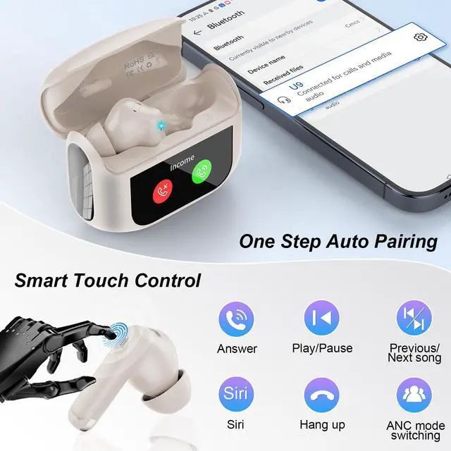 More Practical Functions: The bluetooth headphones charging box provides various functions beyond just charging. You can find your headset, set a timer, and customize the wallpaper. Furthermore, the wireless ear buds charging box allows you to adjust the brightness, change the language, set the time, control the photo, and activate the flash function without taking out your phone. It provides solutions for your daily comfort.