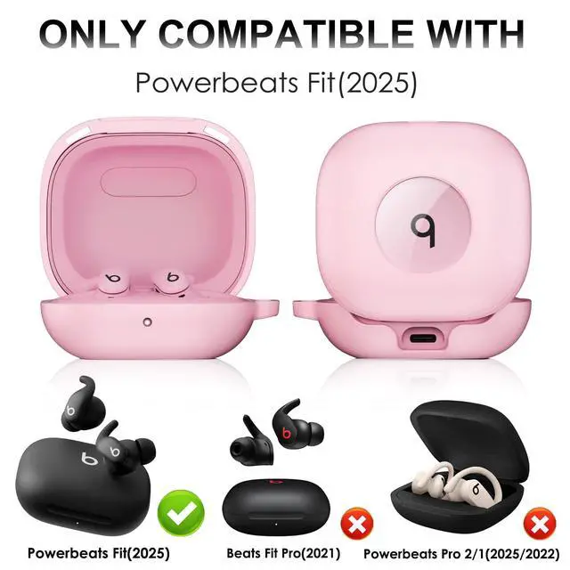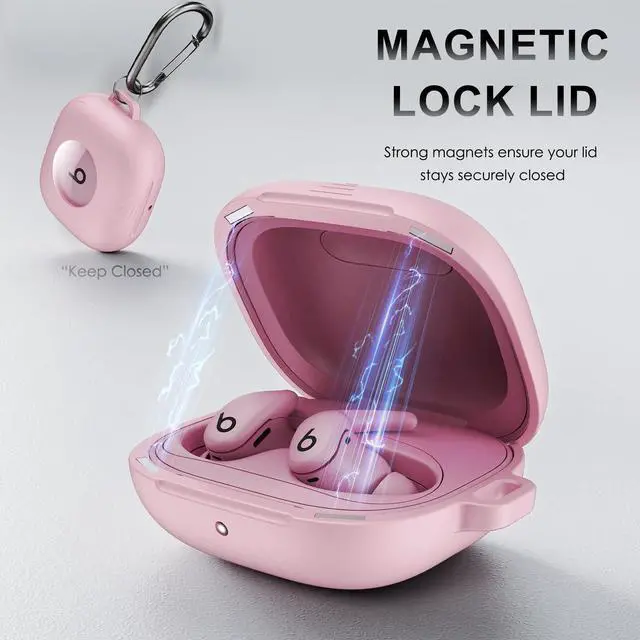 Compatible with Powerbeats Fit Case Cover, Shockproof Magnetic Case for Powerbeats Fit 2025 Earbuds, Magnetic Lock Lid Protective Cover with Cleaner Kit & Carabiner (Pink)