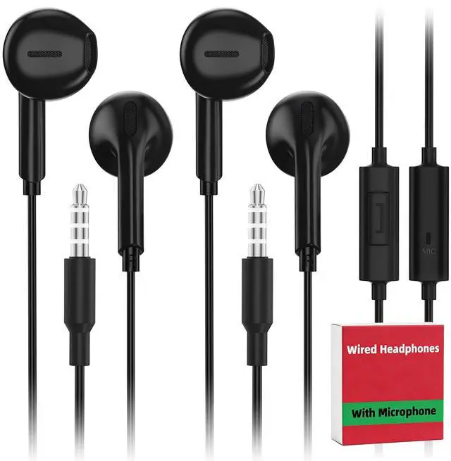 2 Pack Wired Earbuds with 3.5mm AUX Plug Headphones, Earphones with Microphone, Corded for 3.5mm Jack Ear Buds for iPhone, Computer, Laptop, School Students, Women, Small Ear