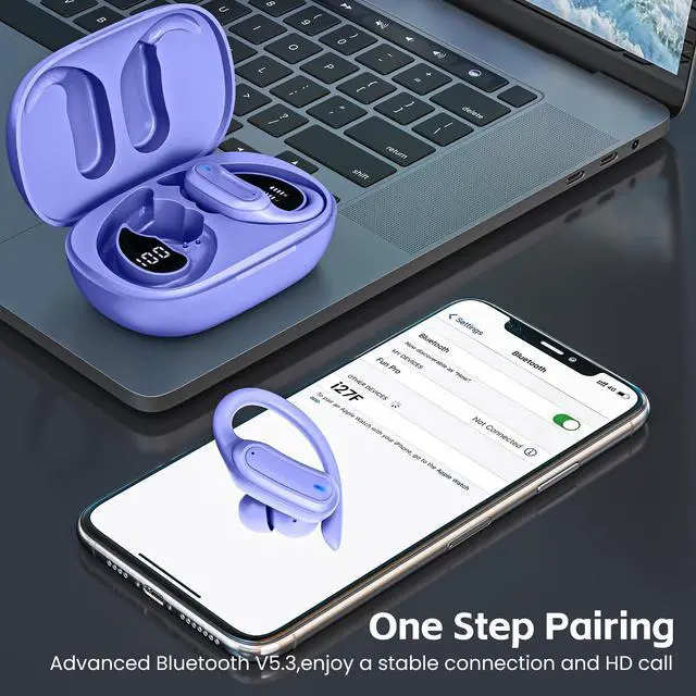 Wireless Earbuds, Bluetooth 5.4 Headphones, True Wireless Stereo Sound Earphones with Noise Cancelling Mic, Fast Charging, IPX7 Waterproof, Comfort Fit Ear Buds for Sports/Workouts/Travel (Purple)