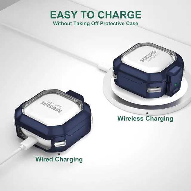 Easy to Charge Front LED visible design and side with hollowed out design support wire and wireless charging. The charging port is compatible with Galaxy Buds FE (2023), Galaxy Buds 2 Pro (2022), Galaxy Buds Pro (2021), Galaxy Buds 2 (2021), Galaxy Buds Live (2020). Easy to charge without taking off the protective case.