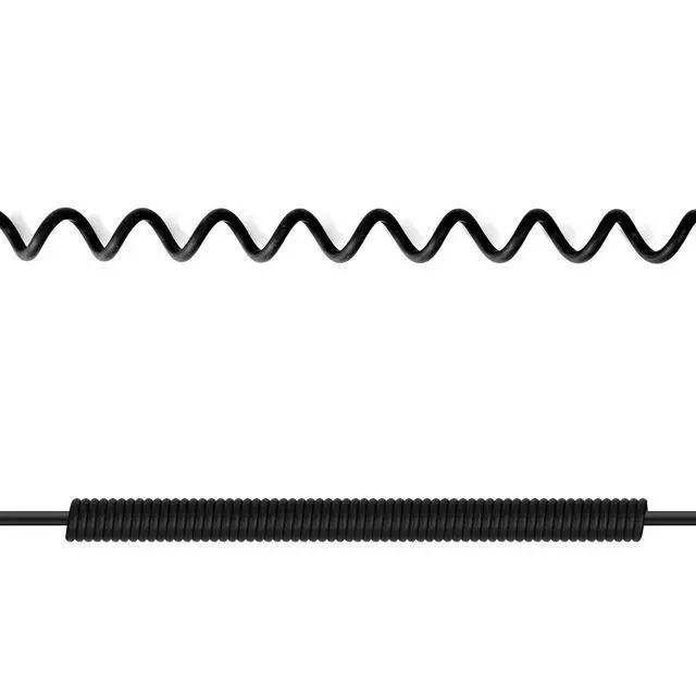 Wire MaterialBlack imported environmental PU material spring (good hand-feeling, frosted texture), wire length 1.2m (stretched length up to about 2.5m)