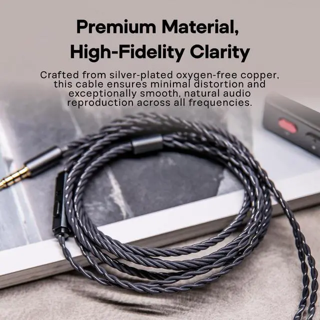 Silver-plated Oxygen Free Copper OFC CableThe cable is constructed from silver-plated oxygen-free copper to ensure softness and slenderness while effectively reducing distortion. This design facilitates a natural transition between high and low frequencies, providing better ductility and smoother overall sound performance.