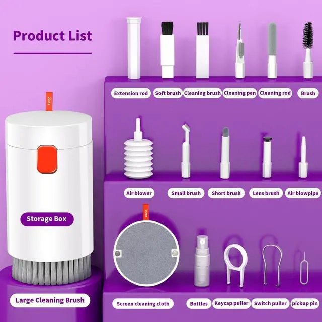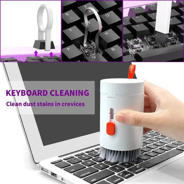 KEYBOARD, COMPUTER, CAMERA CLEANING The keycap puller and switch puller can easily remove keycaps, and the brush can easily remove dust and smudges from the keyboard, computer, and screen. It is suitable for cleaning ordinary keyboards, mechanical keyboards, notebook keyboards, MacBooks, and PCs. The camera cleaning kit, lens pen, air blower, and soft brush can effectively remove dust, improve picture quality, and prolong the life of the camera.