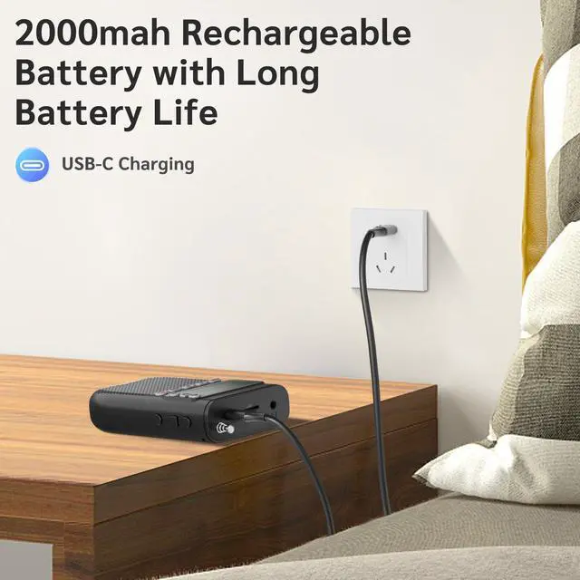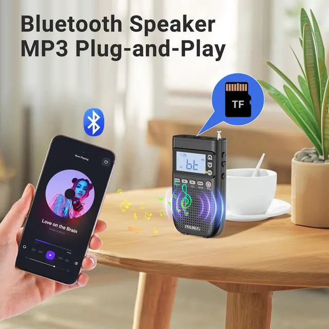 Bluetooth Speaker & MP3 PlayerIts MP3 and Bluetooth Speaker functionality distinguishes itself considerably from other conventional radios available in the market. When a TF card is inserted or a radio connects to your phone, this small radio offers features such as single-song repeat, playlist looping, and shuffle play, ensuring a personalized listening experience every time you tune in, freeing you from an unchanging playback order.