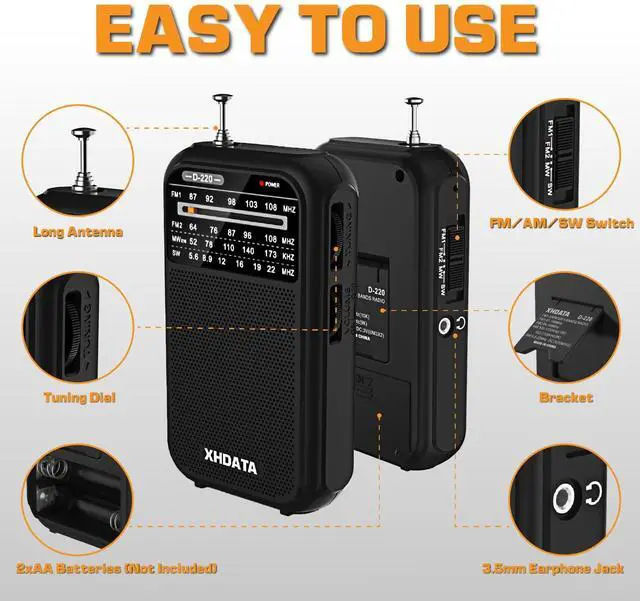 [EASY TO USE] Designed with 3 control buttons for easier adjustment - tuning knob, band switch, volume/power switch button. This portable AM FM SW radio is quite easy to use for elders, adults, children, and makes a great gift for everyone.