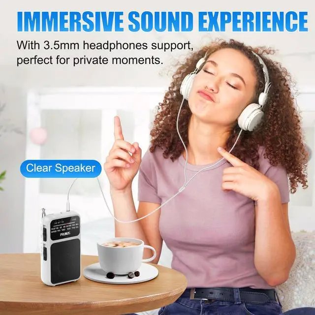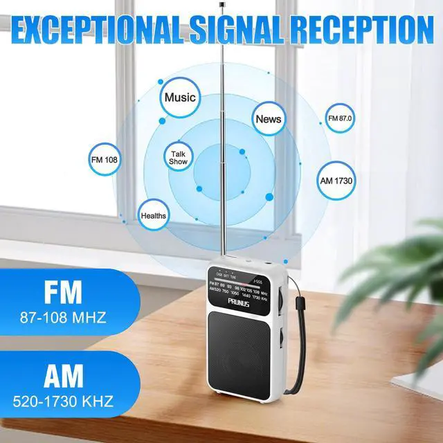 Outstanding Reception Quality This transistor radio features a telescopic antenna that enhances and stabilizes signal reception. With a built-in DSP chip, it offers superior interference resistance indoors, ensuring clear audio quality. Supporting a wide range of FM (87-108 M