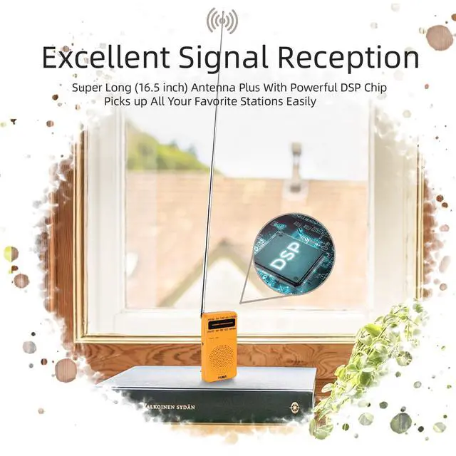 Excellent Signal ReceptionFM: 87-108 MHz, AM: 520-1730 kHz. This small radio with excellent signal reception is sure to win your heart. Equipped with a 16.5-inch long 360° adjustable antenna and built-in advanced DSP chip, you can easily receive local stations, whether you're in the city or a remote area.