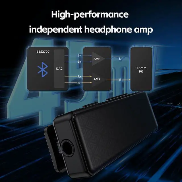 With a built-in high-performance independent ear amplifier and an output power of up to 45mW (16), it allows earphones to deliver excellent performance, providing high-quality music comparable to wired connections via Bluetooth.