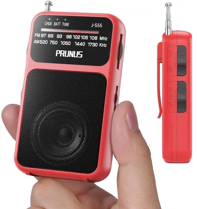 Ultra Mini Design A pocket radio that fits comfortably in your hand! Measuring just 4.3 x 2.3 x 1.1 inches, this lightweight AM FM Radio Portable weighs just 3.6 oz. (Smaller than a credit card) With a lanyard and clip, you can easily clip it to your belt or hang it from your bag to listen to your favorite radio anytime, anywhere outdoors.