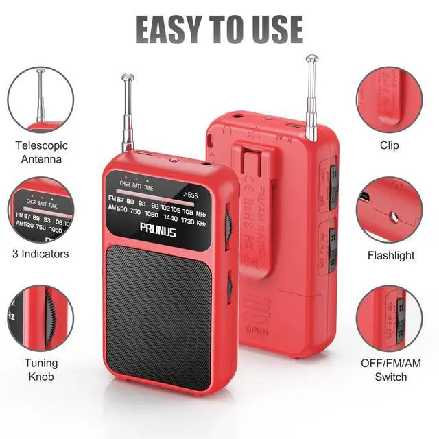 Easy to Use The AM/FM switch allows you to effortlessly switch between channels, while the intuitive rotary tuning and volume knobs provide smooth control. The tuning indicator light makes it easy for both seniors and children to find and enjoy their favorite stations. Additionally, the built-in flashlight offers peace of mind in the dark.