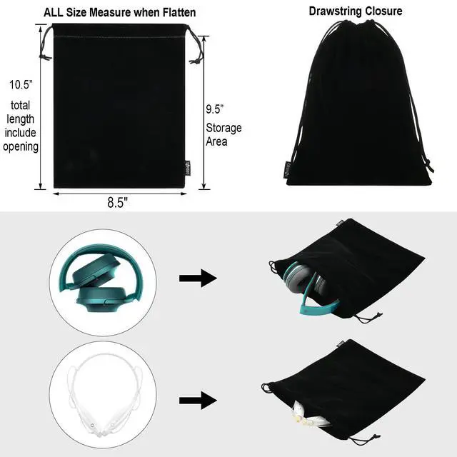 5 Pcs Portable Headphone Carrying Bag Travel Headset Storage Pouch Soft Drawstring Headphone Case Bag for Over-Ear Headphones Gaming Headset Neckband Earphones (Black Color)