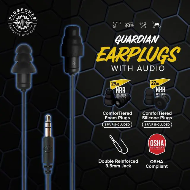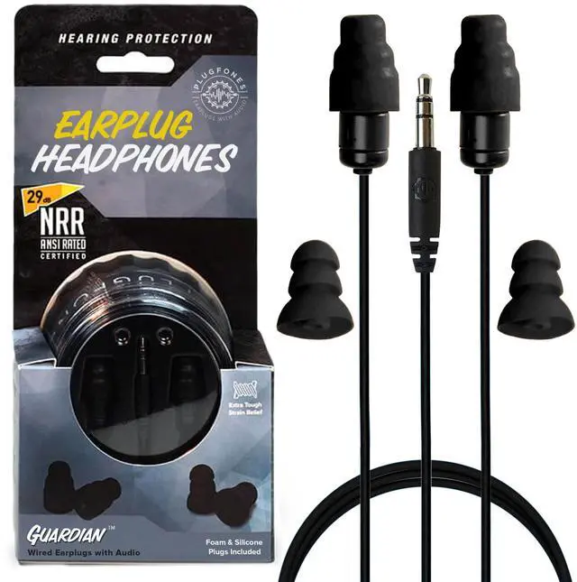 Earplug Headphones - OSHA Compliant Noise-Reducing in-Ear Headphones with Hearing Protection - Wired Hybrid Design for Work and Travel - Includes Silicone & Foam Earplugs - Black