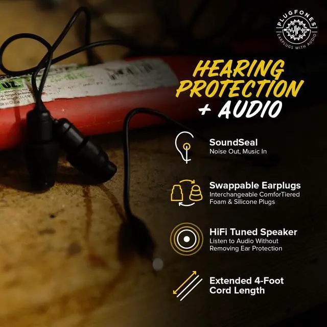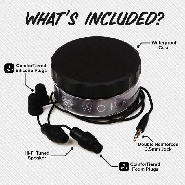 DURABLE WORK EARBUDS FOR LONG SHIFTS: Made for industrial use, these earplug headphones are sweat-resistant and feature a double-reinforced audio jack. Trusted by professionals for reliable performance during construction, landscaping, manufacturing, and more.