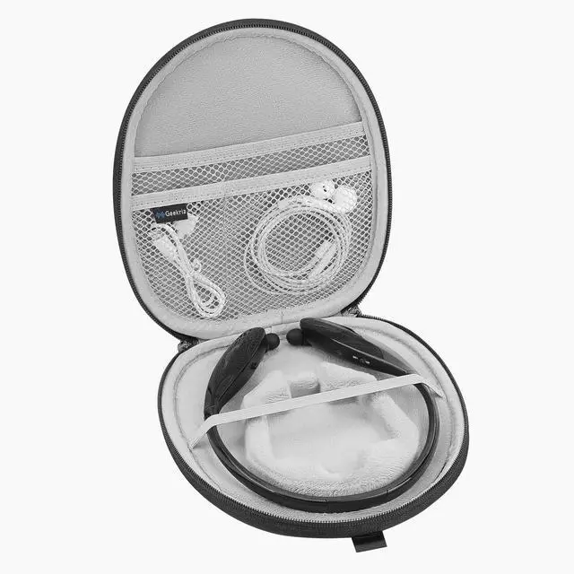 • Internal mesh pocket conveniently stores cables, chargers, earpads, adapters, and other accessories.