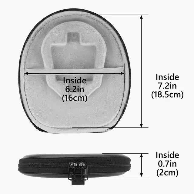 • Maximum compatible headphone dimensions (inside): 7.28 x 6.3 x 0.79 inches. Compatible with many wired / wireless headphones.