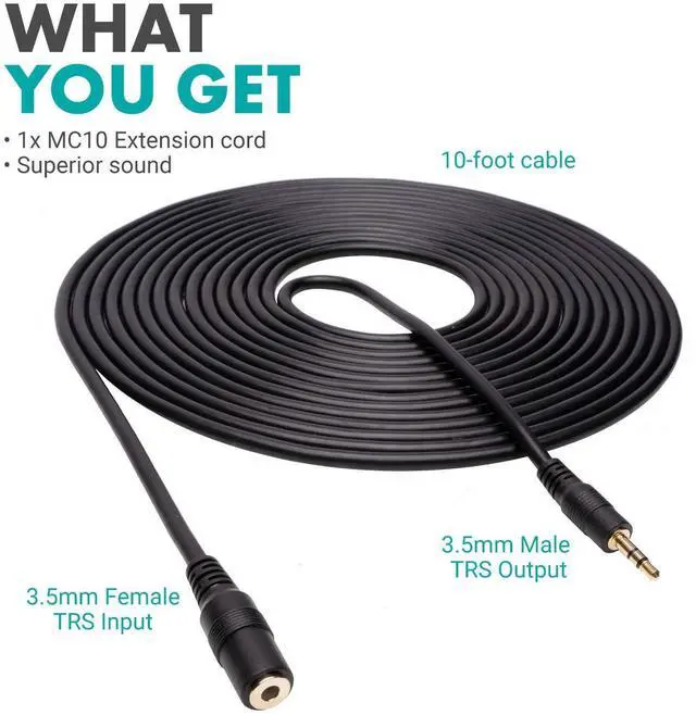LONG EXTENSION CORD: Extend the reach between your TRS microphone or headphone and your devices such as a recorder, camera, and computer by 10ft (3m).