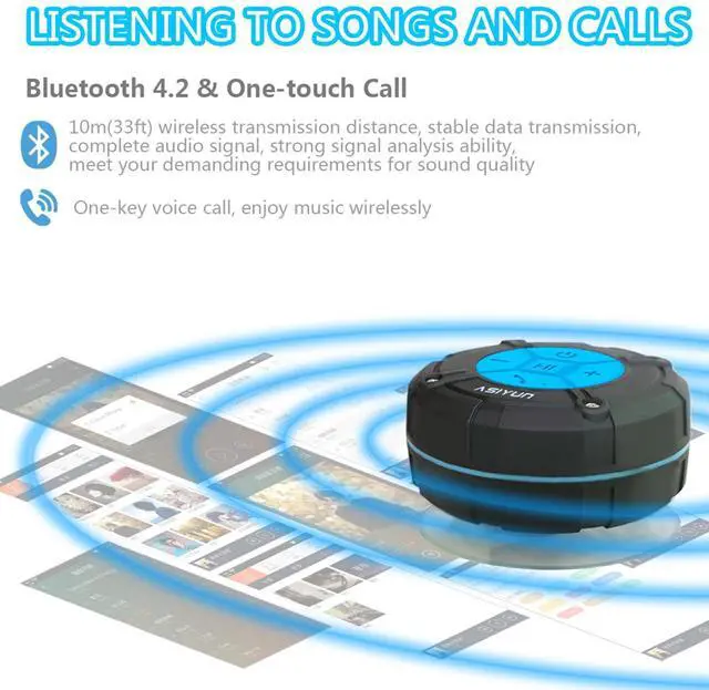 Shower Speaker, IPX7 Waterproof Speaker, Loud HD Sound, Portable Wireless Speaker with Suction Cup & Sturdy Hook, Built-in Mic, for Shower, Pool, Beach, Outdoor (Blue)