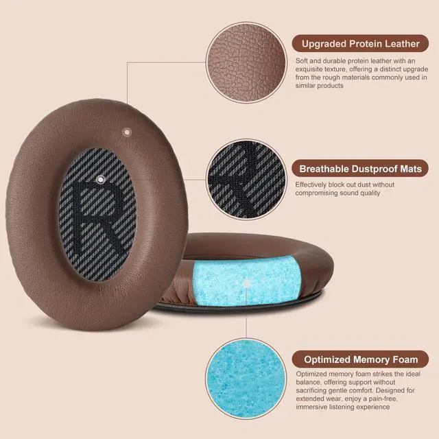 Premium Protein Leather: Indulge in supreme comfort with premium protein leather imported from Japan. Its softness is gentle on your skin while restoring your headphones with a delicately textured, brand-new feel.