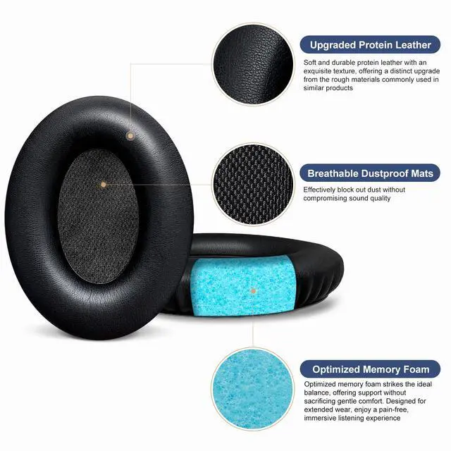 • Optimized memory foam, not overly soft to be squishy or lack in support, not too stiff to hurt your ears.