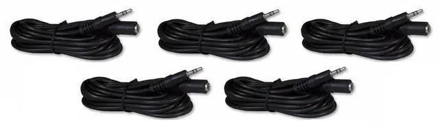 Five Pack of 12 Foot 3.5mm Headphone Extension Cables Male/Female