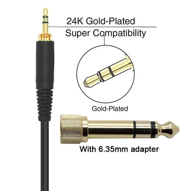 • Connection: Gold plated stereo jack plug (3.5 mm) and 1/4" adapter (6.35 mm).