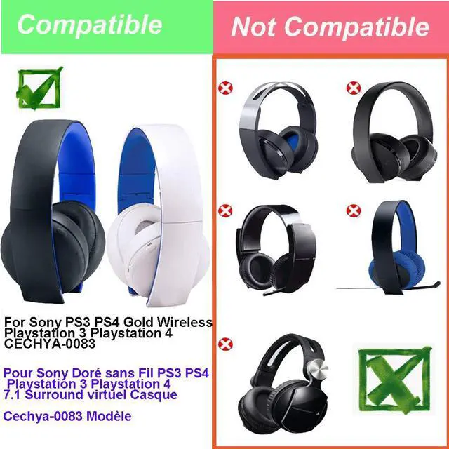 • Replacement EarPad Cushions for PS3 PS4 Gold Wireless Playstation 3 Playstation 4 CECHYA-0083 Stereo 7.1 Virtual Surround Headphones