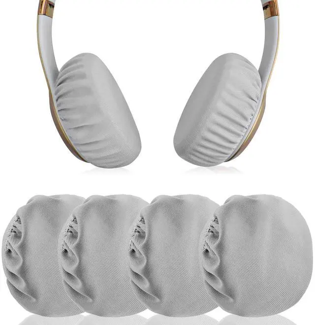 2 Pairs Flex Fabric Headphones Ear Covers - Product Safety Certified - Washable & Stretchable Earcup Protectors for On-Ear Headsets, Sweat Pads for Gym, Meeting (Size S/Grey)