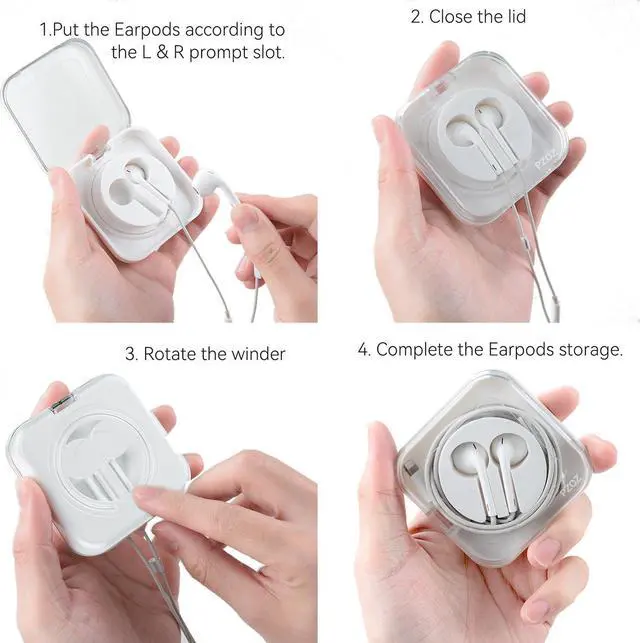 Easy to UseInstall: Simply place the earbuds in the case, close the lid, rotate the bottom winder, and wind the earphone cord into the case. Remove: Open the case to release the earbuds instantly and tangle-free with a single pull.