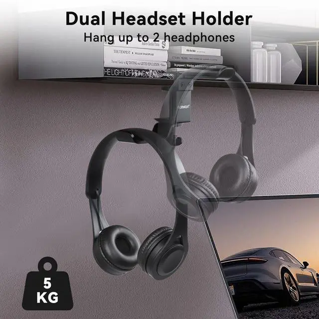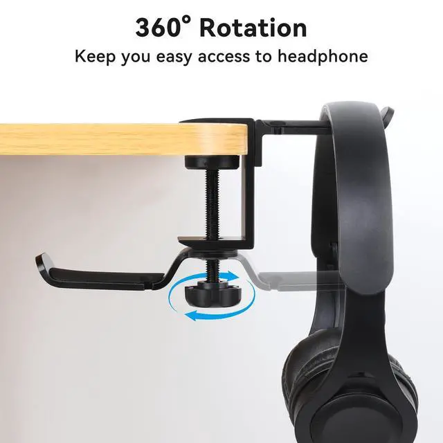 360° Rotation Headphone HangerThe dual headset stand features a 360° dual-rotating arm, providing flexible spatial adaptability and quick access to your headphones. By rotating, you can turn the headset to the side or against the wall to reduce the space it takes up, which is especially suitable for compact working environments.