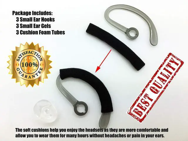 Included: 3 Small Ear Buds, 3 Small Ear Loop Hooks, 3 Cushion Foam Tubes for Earloop Hooks.