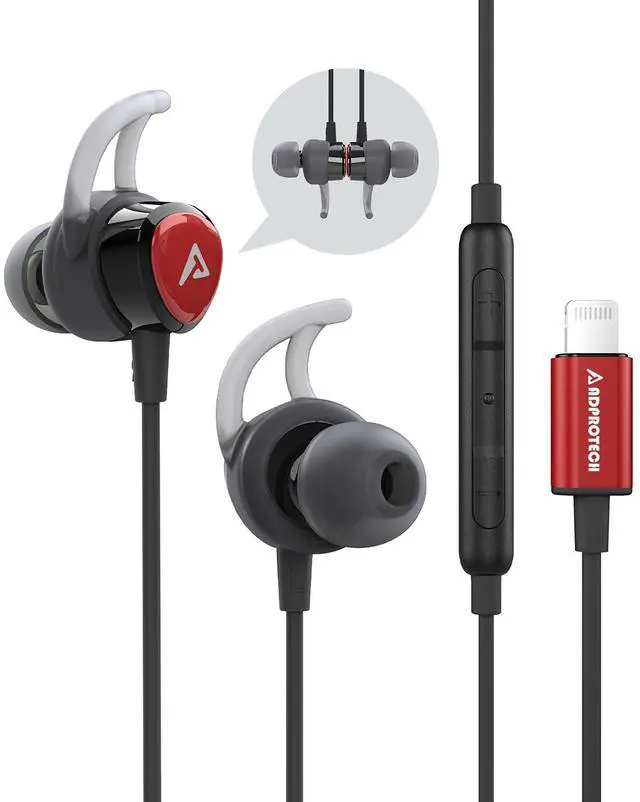 Headphones Earphones Magnetic Earbuds in-Ear Certified with Microphone Controller for Sports Workout Compatible with iPhone 14/13/12/11/Pro Max/Xr/Xs Max/X Black&Red