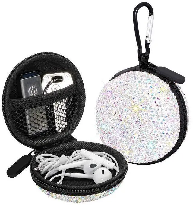 FASHION ITEMS- This earphone case is a dazzling sun catcher, beautifully crafted with high quality sparkling rhinestone. Small case for earbuds makes your daily life more convenient and interesting.