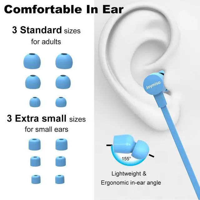 COMFORTABLE EARBUDS FOR KIDS AND SMALL EARS - With a lightweight and ergonomic angled in-ear design, these wired earbuds fit comfortably without dropping like other heavy and bulky earphones (not for intense exercise). Six different sizes of eartips are provided for a personalized fit as well as noise isolation from ambient noise, including three standard sizes for adults and three additional tiny sizes for individuals with smaller ear canals, such as kids (recommended for ages 8+), petite women, boys, and girls.