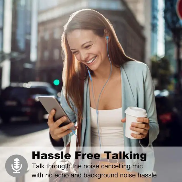 DURABLE EARBUDS WITH CASE AND TANGLE-FREE CORD - These wired earphones are built to last, featuring a sturdy cable, reinforced jack, and durable ear pieces. The flat wire is tangle-free and resists twisting. A handy carrying case offers easy storage and portability while keeping the earbuds protected from damage in a backpack or pocket, making them ideal for daily use at work or school.